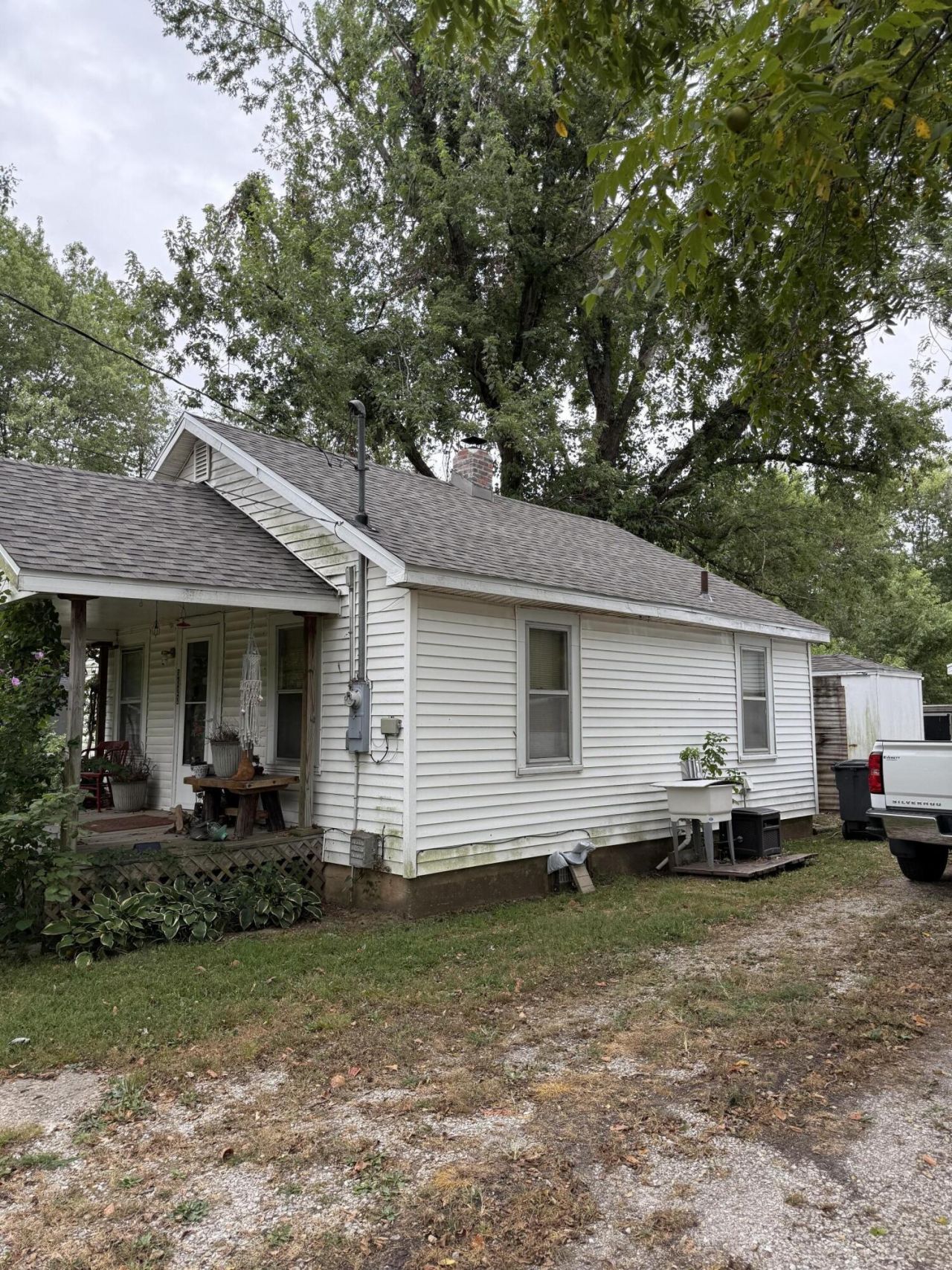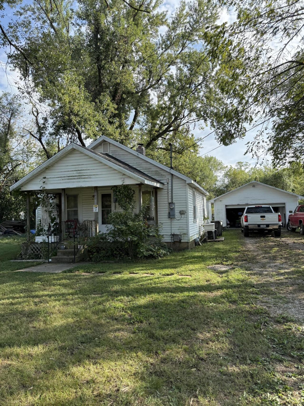 Super cute house with two car detached garage! New roof on both! Home has covered front porch and central heat and a/c. Great for investment or for someone wanting a great garage/shop. House has 576 sq ft and garage has 572 sq ft! Same owner since 1989. Check out the large (70 x 290) lot! Laundry room could be used as second bedroom.