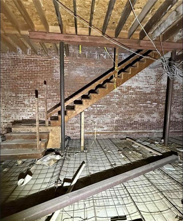 This is over 1800-square-foot, two-story brick building with significant structural and utility updates completed, and a pinned survey. The exterior brick has been tuck-pointed, ensuring durability and aesthetic appeal.The first floor is prepared for a radiant heated floor system, with rebar and foam insulation installed in anticipation of the final heating components. Plumbing has been stubbed in for both the bathroom and the kitchen, making them ready for installation and interior buildout.The second floor has been framed, featuring a well-planned layout that includes:Two spacious bedrooms, each with a dedicated closetTwo bathrooms, framed and ready for plumbingThis property provides a solid foundation for a custom build or renovation project, with major foundational work already complete. It is ideal for residential use, conversion, or mixed-use development, depending on your goals, all sitting within a mile and a half of Big Brutus.