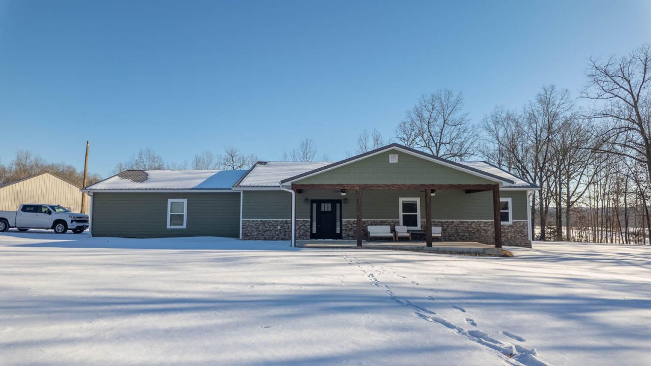 Privacy and seclusion await at this stunning newly built three-bedroom, two-bath home situated on approximately 17 acres in the highly desired Thayer School District. Designed for both comfort and entertaining, this property offers modern construction, functional space, and the peaceful setting buyers are searching for.The home features an open-concept living, dining, and kitchen area that creates a seamless flow for everyday living and gatherings. The kitchen is a true highlight with custom Beachwood cabinets, granite countertops, stainless steel appliances, and a massive farmhouse-style sink. Spacious bedrooms provide flexibility, while a dedicated office space, mudroom, and oversized garage add everyday convenience. The living area is anchored by a beautiful stone fireplace with a gas log and opens through patio doors to a massive covered back porch, extending the living space outdoors.Outdoor living truly shines with large covered porches, a screened porch, and a covered front patio, all ideal for summer barbecues, family gatherings, or simply enjoying the quiet surroundings. The property also includes a 30x30 shop with concrete floors and an upper storage area, perfect for equipment, hobbies, or storage. A 10-foot lean-to she-shed with electricity installed by a well-known local electrician adds even more versatility.Portions of the acreage have been cleared, offering excellent potential for animals, gardening, or future improvements, while the remaining land provides privacy and room to roam. This property combines quality construction, usable land, and an excellent school district, making it a standout opportunity for those seeking space, privacy, and modern country living.
