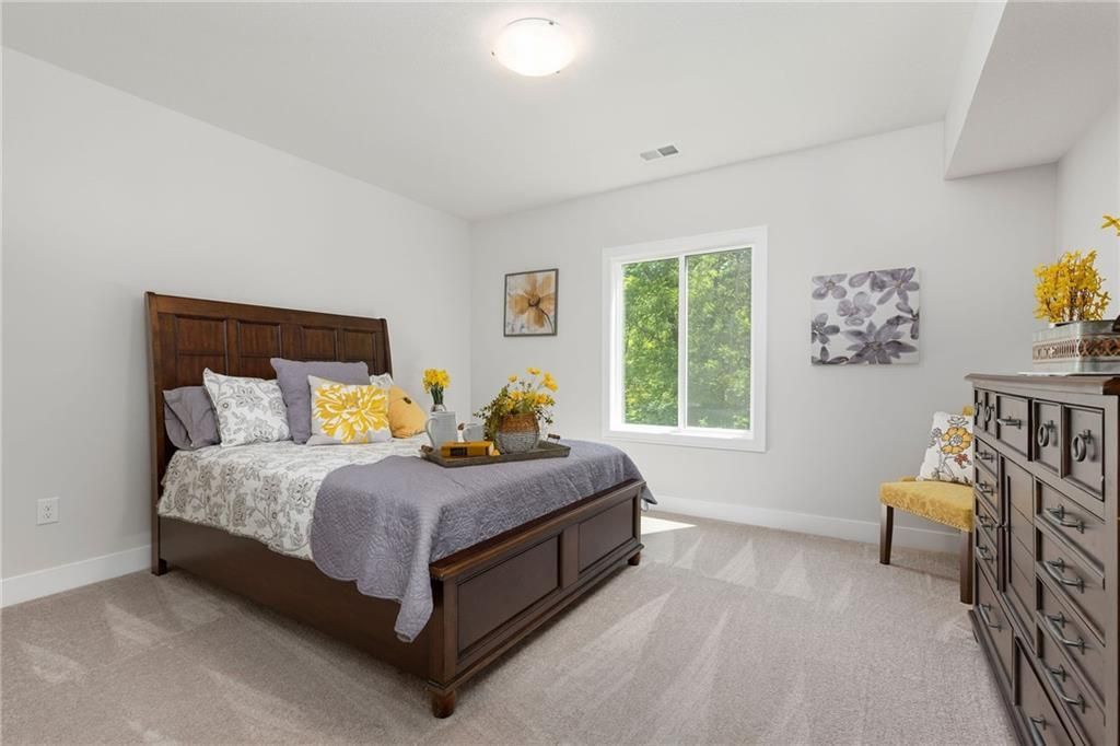 Welcome to Harding Homes popular Laurel model home. Upgrades galore on this beautiful treed greenspace lot. This homes has it all & more!! The vaulted ceiling and spacious open concept living invite you right in. White oak hardwood floors flow throughout the main level. Large island to entertain all of your family & friends. Custom cabinets, walk-in pantry, SS appliances & granite perfectly complete the kitchen. Primary suite features a large trimmed accent wall, oversized walk-in closet, and en-suite bath with dual vanities and walk-in shower. Primary closet connects to laundry room! Additional bedroom/office is also on the main level with full bath. Huge lower level with family room, 2 additional bedrooms, full bath & plenty of storage. Extra deep garage w/XL garage door, high efficiency furnace & AC. Doesnt get any better than this! Come tour it today!!