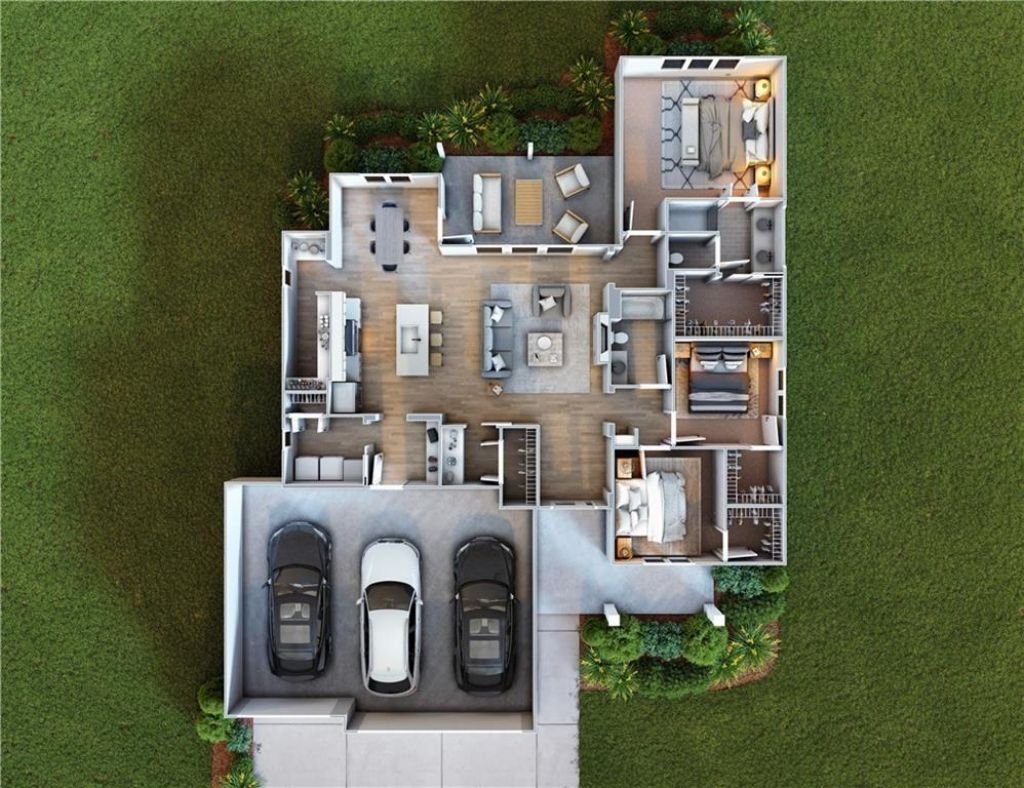 Address is NOT mapped, see directions!!! The Hesston floorplan by Drippé Homes. Open concept with tons of natural light! Kitchen furnished with stainless appliances, gas cooktop, hood vent, microwave, quartz countertops, large island with oversized sink and GIANT walk in butlers pantry with built-ins. Three bedrooms on with primary opposite other bedrooms AND a bonus pocket office/storage room. Ensuite features double vanity, tiled walk-in shower, private water closet and gigantic closet laundry. Mudroom and laundry room off garage/kitchen with boot bench. Cozy up to the fireplace in the living room or enjoy the sunrise from covered back patio. Home backs to tree-line providing ultimate privacy three car garage provide plenty of storage. Directions: From US-56 E and E High Street, Left/North on E High Street, E High Street turns into Rockers Drive, home is on the right on the N side of US-56 E
