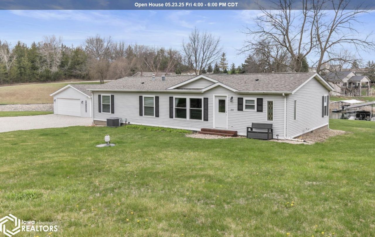 118' of Lakefront Property with Breathtaking Sunset Views Discover this exceptional Highland-Champion manufactured home, perfectly situated on nearly an acre of land with 118 feet of freshly rocked shoreline. Enjoy unobstructed lake views and serene sunsets from this flat, easily accessible lot in the highly sought-after 'Crappie Cove.' This well-maintained home features numerous recent updates, including windows, most doors, fresh paint, updated fixtures, a 2024 roof, central air, a newer water heater, and modern appliances. The low-maintenance siding ensures lasting durability. Step inside to a spacious open-concept layout designed for comfort and functionality. The home boasts two generously sized bedrooms with corner closets and a luxurious master suite complete with an expansive en-suite bathroom, featuring double sinks, a jetted tub, and a separate shower. The large kitchen opens directly to a spacious deck?ideal for entertaining while taking in the spectacular water views. Additionally, the fully insulated garage is designed for both storage and entertainment, featuring custom-built guest accommodations and dual overhead doors that open to enhance the lakeside experience. A double floating dock with power provides easy lake access, making this property perfect for boating and water activities. Whether you're looking for a move-in-ready lakefront retreat or the perfect lot to build your dream home, this is it!