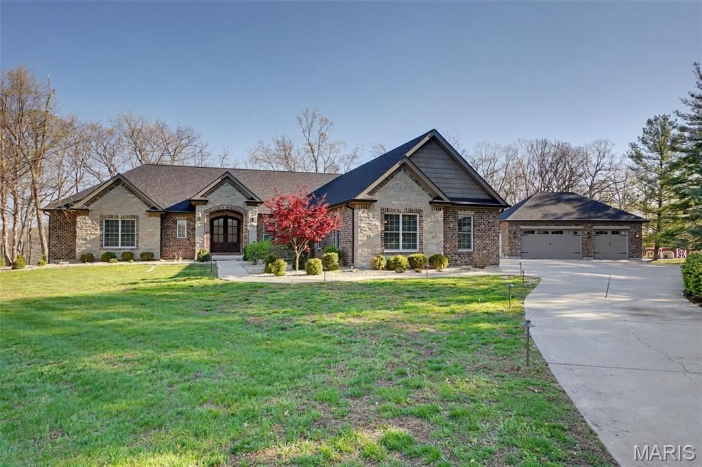 Experience the ultimate in privacy and natural beauty with this stunning custom waterfront property nestled on 37+ mostly wooded acres fronting the serene waters of Callaway Valley Lake. Crafted with exceptional attention to detail, this one-of-a-kind property showcases rich woodwork and impeccable craftsmanship throughout. Highlighted by a grand wood-paneled ceiling with softly arched beams, and a floor to ceiling stone fireplace that lend warmth and architectural elegance to the main living space. At the heart of the home lies an open, elegant luxury kitchen that is sure to impress with custom cabinetry, premium appliances, and generous prep space, making it ideal for both everyday living and entertaining in style. Hop in the side by side and head to the lake to enjoy your own private boat dock, perfect for fishing, kayaking, sunset cruises, or simply soaking in the peaceful lakeside setting. This land is ideal for hunting, hiking, and exploring, offering year-round outdoor adventure in your own backyard. Additional features include a total of 7 garage spaces, a versatile detached 3 car garage, a large chicken coop, and charming Barn with loft space and concrete floors adding both functionality and character to this exceptional property. All of this is set within a peaceful, wooded landscape that feels worlds away-yet is just minutes from New Melle, Wentzville and Defiance, Missouri. ATTN: Option to purchase just 32+/- acres with the lake frontage, dock and barn Available!! includes Lake Rights!