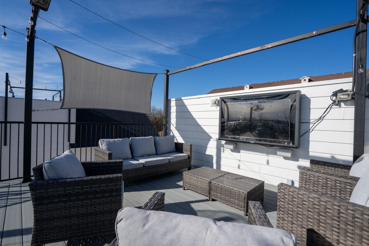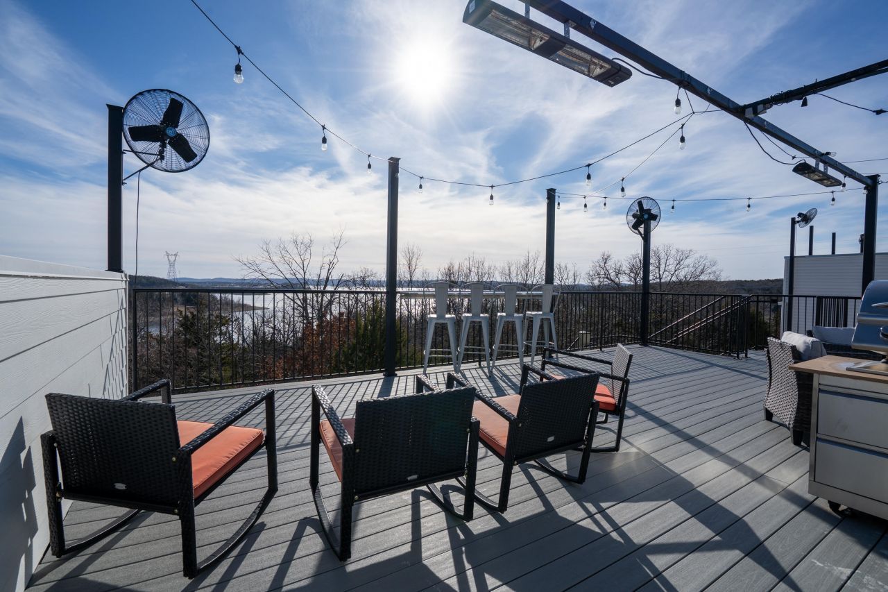 Welcome to the Rooftop Lodge at Table Rock Lake, a luxurious 5-bedroom plus bunk room, 6-bath retreat designed for comfort, relaxation, and unforgettable lakefront experiences. Just minutes from everything Branson has to offer, this lodge combines convenience with the tranquility of lakefront living.The crown jewel of this lodge is the expansive rooftop deck, offering sweeping views of Table Rock Lake. Enjoy your morning coffee as the sun rises over the water, or host a family grilling night under the stars. The rooftop features an outdoor TV, ceiling fans for warm days, infrared heaters for cooler evenings, a grill, mini fridge, sink, and ample seating for everyone?perfect for entertaining or quiet evenings alike.In addition to the rooftop, the lodge includes a large outdoor patio for ultimate relaxation and recreation. The patio features a second grill, a hot tub, multiple seating areas, and a fire pit for cozy evenings. Steps lead down to the lake for easy access, and a scenic walking trail offers a peaceful stroll along the waterfront. Kayaks or small watercraft can be launched directly from the lakeside.Inside, the primary suite is conveniently located on the main level alongside a spacious gathering area for dining, living, and gaming. The second level hosts four additional bedrooms and a bunk room with four beds, making it ideal for family vacations or group getaways. This lodge blends luxury, functionality, and one-of-a-kind lakefront living to create the ultimate Table Rock Lake retreat.