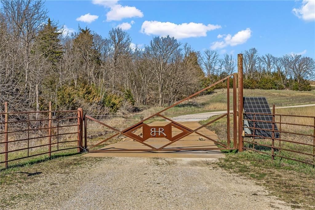 Unique 363-acre ranch in Douglas County near Overbrook offering exceptional versatility for horses, cattle, hunting, and recreational use. The property has a proven history as a working cattle operation with welded pipe pens and multiple automatic watering stations, along with four small ponds. Over half of the perimeter borders US Corps of Engineers land, providing nearly 2 miles of direct access to hiking and horse trails that connect to Rockhaven Horse Park, a rare feature for horse owners and outdoor enthusiasts. The barndominium includes approximately 1200 sq ft of finished living space with 1 bedroom and 1 bath, plus an additional 2000 sq ft of unfinished space ready for expansion. A wrap-around porch offers space to take in the surrounding views. A separate outbuilding with two more large overhead doors adds additional storage or workspace. Positioned roughly halfway into the property, a highpoint rising more than 150 ft above the road slopes toward Clinton Lake and provides an ideal future building site, while the existing barndominium could serve as an ADU. Seller would consider offers on less than the entire acreage, currently shown as 7 parcels by Douglas County.