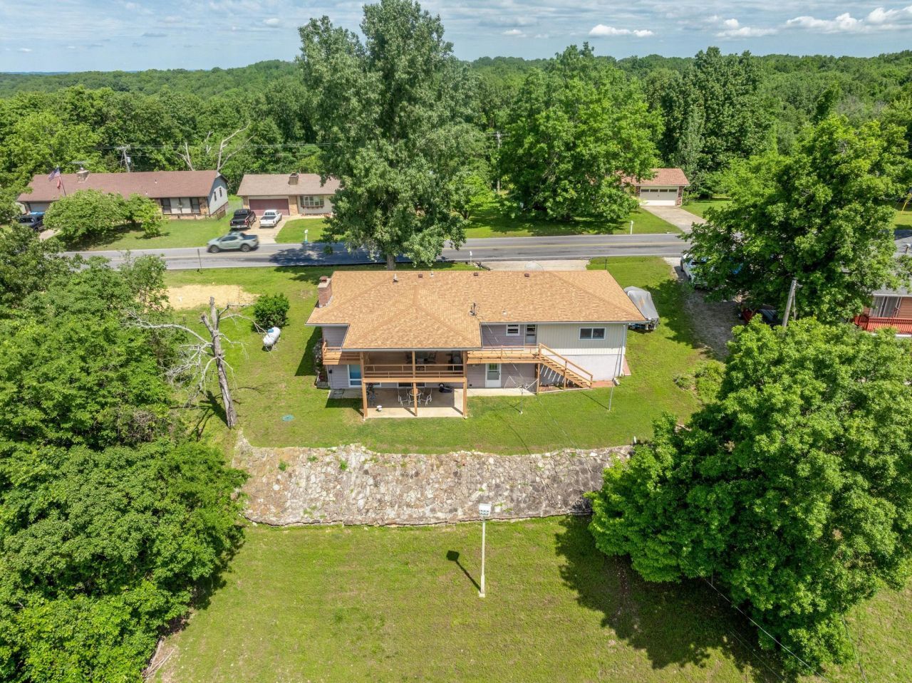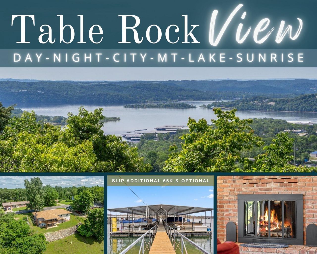 Now with quote for a circle drive for easy access off James River Road! Perfectly perched in lake-loving Kimberling Hills, this attractively priced 3-bed (one bedroom is non-conforming lower level living room), 2-bath home offers sweeping year-round views of Table Rock Lake, the Ozark Mountains, city skyline, and sunrises over the bridge. Enjoy the serenity of nature from the covered back deck and lower-level patio. A concrete driveway and attached two-car garage with workshop provide ample parking and functionality. Low-maintenance landscaping adds to the appeal of easy lake living. Inside, the main level features an open and functional floor plan with a spacious kitchen offering dine-in bar, generous prep space, and newer appliances included. A cozy brick fireplace creates the perfect centerpiece for gatherings. Oversized windows flood the home with natural light and showcase endless lake views. The main level also includes two large bedrooms and a full guest bath. The walk-out lower level offers a second living/recreation area, second full bath, laundry area with natural light, and extensive storage space. Step outside to the covered patio with more unforgettable lake views. Bonus features include a two-year-old roof and optional boat slips available through third party: 10x28 for $85K or 10x22 for $65K. Located just a short golf cart ride (permit required) to downtown Kimberling City with restaurants, shops, spas, a seasonal farmers market, and the popular Port of Kimberling Marina. Only 30 minutes (+/-) to Branson for world-class dining, shopping, and entertainment. Whether you're looking for a full-time residence, weekend getaway, or vacation rental opportunity, 39 James River delivers lake life at its best.