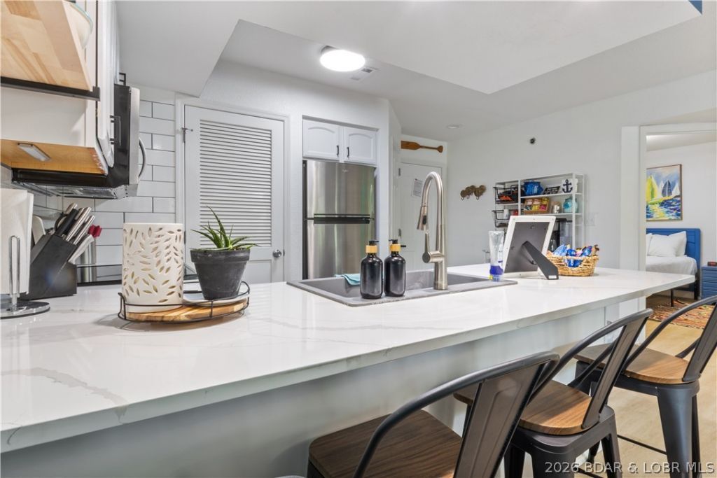 Completely renovated and move-in ready, this beautiful 2 bed, 2 bath Lake of the Ozarks condo offers comfort, convenience, and investment potential all in one! Located in a centrally situated community just 5 minutes from the Strip, this unit features all new appliances, flooring, fixtures, kitchen items, and furniture. The condo includes 3 beds total (King, Queen, and Full) and is a rare find with only 7 stairs to the unit. Enjoy excellent community amenities including a heated/chilled pool (May-October), swim dock, 2 pet area locations, and an included 12x32 boat slip. Currently operated as a rental for family, friends, and community members, this property offers the opportunity to continue rentals for immediate income or enjoy it as your own fully updated lake getaway. A turn-key property in a prime location with everything you need to start enjoying lake life right away!