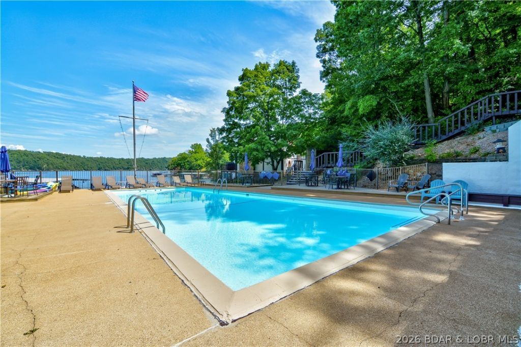 Space, comfort, and value come together in this furnished condo at Osage Heritage located at the 29 Mile Marker of Lake of the Ozarks. With easy parking just steps from the door, getting in & out is incredibly convenient. Inside you'll find a spacious open floor plan that connects the living, kitchen, and dining areas-perfect for relaxing with family or entertaining guests. One of the standout features is the wraparound deck, offering an expansive outdoor living space with a big lake view from the main part of the deck. It also includes a gate with direct access to the grassy area, making it easy to enjoy the outdoors. The huge master suite features an attached bath with walk-in shower, while the generous guest bedroom sits conveniently across from the second full bathroom. The seller has recently installed new flooring & appliances giving the condo a fresh, updated feel that shows well. The unit includes a 12X32 boat slip in a new dock plus access to the community pool just a short walk away. Osage Heritage does not allow nightly rentals, creating a quieter, more relaxed atmosphere. For the size, furnishings, boat slip, and location, this truly is a lot of condo for the money.