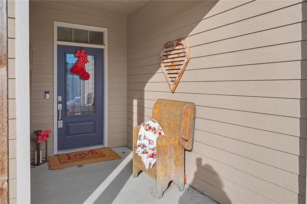 This home still feels new with all the upgrades in popular Hutton Farms. Plantation shutters, gas range, covered patio on the back with rocking chairs greeting you on the front. Drippe Construction created this open concept floor plan with high vaulted ceiling and cross beams. Master closet flows through to the laundry room. Gated community with HOA that covers snow removal of streets, lawn care and sprinkler system. Homeowner responsible for grass inside of the fence.