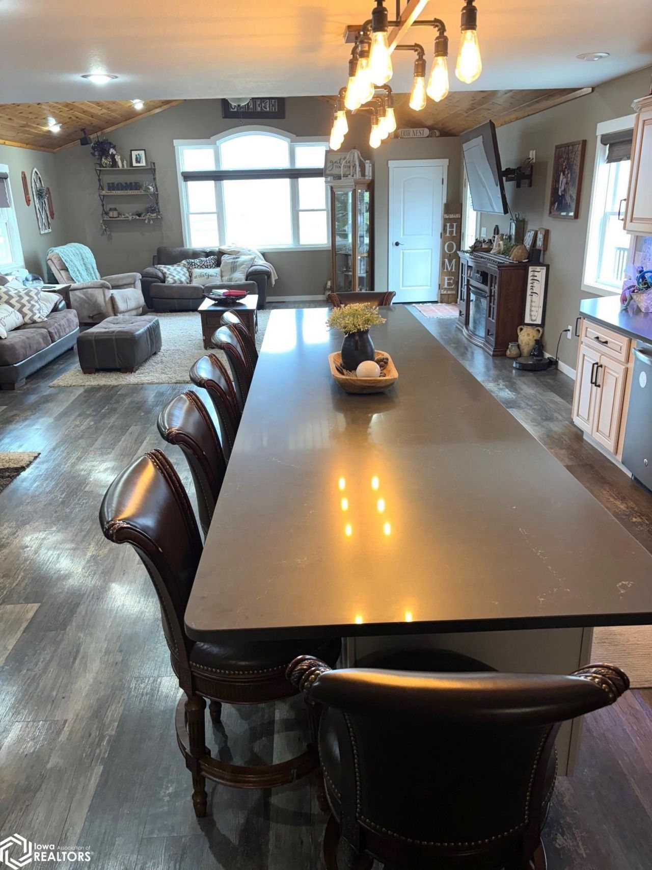 Nice 1 1/2 story home sitting on 1.93 acres m/l. This home features a new addition in 2017. The main level has an open concept with a beautiful kitchen with large center island that offers plenty of seating & a pantry, dining area and spacious living room. You will also find the primary bedroom with a walk in closet, an additional bedroom, very nice full bath and the laundry. The upper level offers 2 spacious bedrooms & a half bath. The nicely finished lower level boasts a great family room, an office and a non conforming bedroom. 5 stall detached garage! Perfect family home!