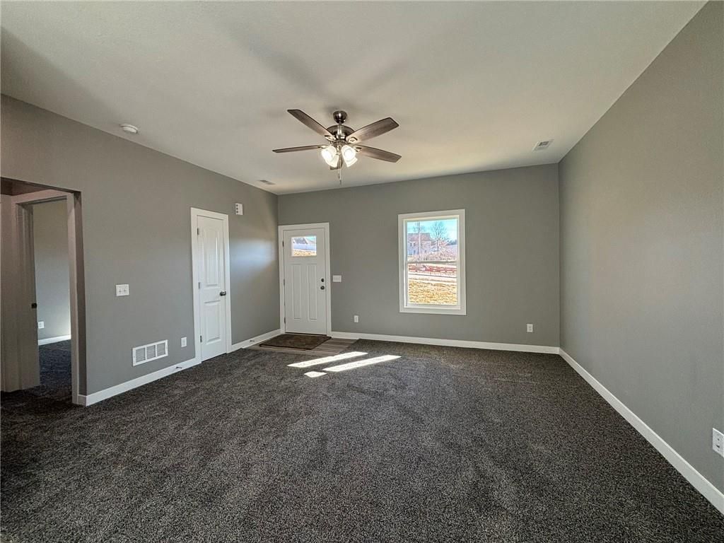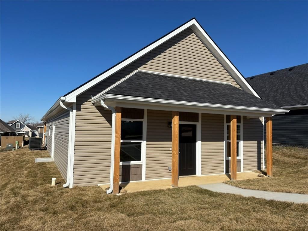 Conveniently located near I-29 just off Hwy 169 and FF Highway! This newly built, vinyl-sided home offers low-maintenance living combined with thoughtful design and quality finishes throughout. A covered front patio welcomes you into the well-designed 1.5-story floor plan featuring four bedrooms and two full baths. The spacious, open living room and dining area flow seamlessly into the kitchen, creating an ideal space for everyday living and entertaining. The kitchen showcases quality-built cabinetry with dovetail construction and soft-close doors and drawers, hard-surface countertops, stainless steel appliances, and a counter with seating for casual dining. The primary suite is conveniently located on the main level and includes a walk-in closet and private ensuite bath with a dual-bowl vanity, 5-foot Onyx shower, and linen closet. Upstairs, youll find the fourth bedroom along with a comfortable family room?perfect for a second TV area, guest retreat, home office, or play space. Additional highlights include main-floor laundry, a 2-car attached garage, and a covered back patio for relaxing outdoors. Enjoy true ease of living with HOA services that include snow removal, mowing, and trash service?all for a low monthly fee.