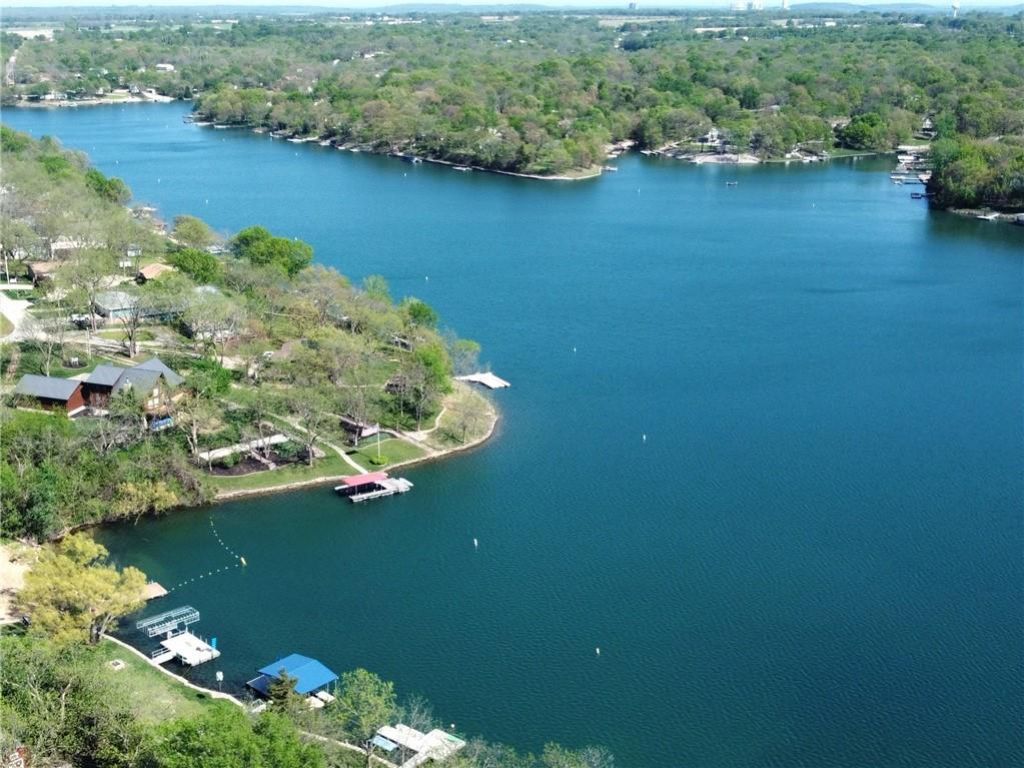 This lakefront log home glows with natural beauty and is lit by stained glass lights that were commissioned works from an artist. The main living area has a very open floorplan with soaring vaulted ceilings and it has 2 focal points. One focal point is the majestic stone (wood burning) fireplace and the other is the wall of windows (with power blinds) where you can look out and over the lake. The kitchen features custom cabinets, solid surface counters, stainless steel appliances including a gas stove and a pantry. The large primary bedroom is on the main level and includes an en-suite bathroom. Hand hewn steps and railings lead to the 3 bedrooms and one bathroom on the upper level. The walkout lower level has approximately 950 sq ft of open area where you find a pool table, a seating area for watching TV and a 2nd kitchen with a huge granite island. The 5th bedroom and a full bathroom are also on this level. In the unfinished area, there is a wine cellar, storage and access to the utilities. There is no drywall in this home. The log home was created by a master craftsman with logs, wood planking, high end materials and lots of love. You must walk the grounds to truly appreciate it. The rear of the house has a deck that spans the width of the home. Below the deck is a generous outdoor seating area with a stone fire pit. The back yard has 166 ft of shoreline that is defined with a natural limestone seawall and a private dock that has a boat lift, a sun cover for the slip and 2 jet ski lifts. Take a moment to look at the professionally designed and maintained landscaping, featuring landscape lighting, natural limestone retaining walls, stone steps, huge plant beds, flowering trees and the Bocce court. The Bocce court was created with a bed of imported oyster shells for an authentic Bocce experience. This piece of paradise is just 35 minutes from southern Johnson County.