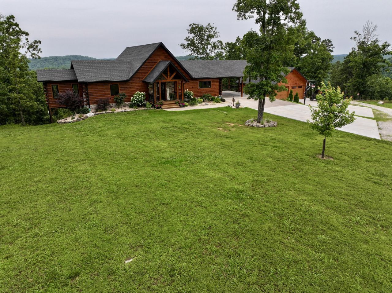 Absolute showplace in the world of Griffin Log homes! This stunning 3-bedroom 3 and a half bath home is situated on 3-acres at 50 Parkview Lane just outside the town of Van Buren. As you move throughout the home, you'll notice a plethora of unique custom touches added by the current owners starting with the entry door carried on to the laundry room which opens into the bedroom for convivence. The kitchen features a beautiful custom farm sink, an island with a gas cooktop and vented custom hood and Kitchen aide appliances throughout. In addition to the 3 Master suites in the home there is an additional sleeping area in the loft above the living room. Extensive landscaping and concrete work have been completed outside as well as a 2-car detached garage to park your additional vehicles and toys in. The views from the backside of the property facing south towards Big Springs National Park are truly exceptional! Located just over a mile from town and less than 3 miles From the Park and the incredible Current River this would make an amazing forever home, summer residence, or vacation rental.