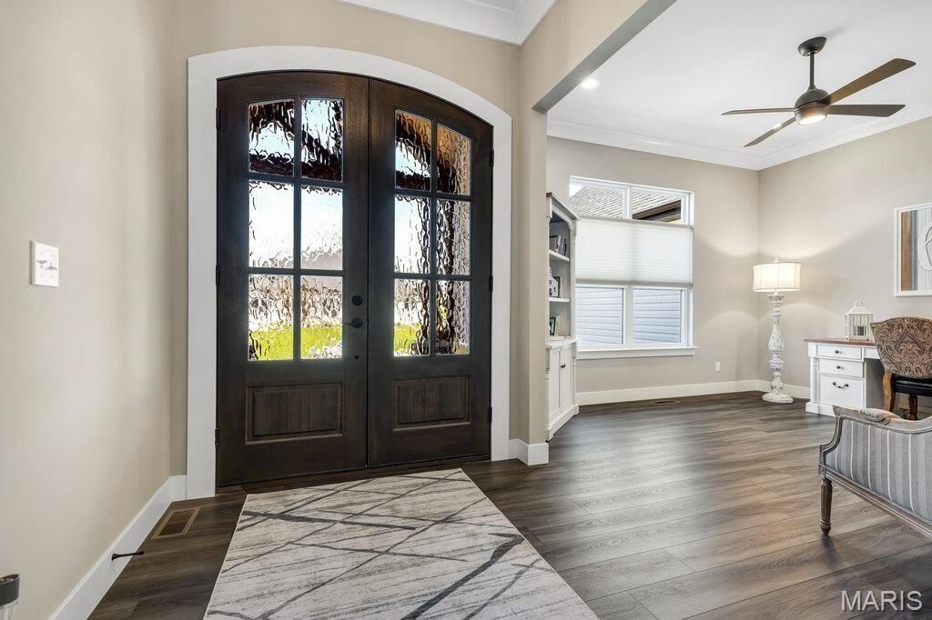 Welcome to this stunning 3.5-year-old modern ranch offering the perfect blend of timeless design and today's energy-efficient living. With 3 bedrooms, 2.5 baths, an additional office space, and striking curb appeal, this home makes a lasting impression from the moment you arrive.Step inside to a thoughtfully designed open-concept floor plan featuring beautiful floors, abundant natural light, and high-end finishes throughout. The show-stopping kitchen is truly the heart of the home, showcasing quartz countertops, 42 cabinetry with crown molding, an extended center island, stainless steel appliances, built-in microwave, gas cooktop with designer vent hood, stylish tile backsplash, and modern black hardware.The inviting great room features a cozy gas fireplace, custom built-in bookcases, and seamless access to the screened-in porch perfect for relaxing or entertaining. The spacious primary suite offers a tray ceiling, recessed lighting, sliding barn door, and a huge walk-in closet. The luxurious primary bath enhances the spa-like feel with beautifully designed finishes and ample space.The partially finished walk-out lower level features a 10' pour, providing impressive ceiling height along with additional living space and room to expand. Just off the 3-car garage, a convenient cubby/drop zone keeps life organized, while the spacious 3-car garage and irrigation system add both functionality and value. Why wait to build when you can move right into this like-new home? Schedule your private showing today!