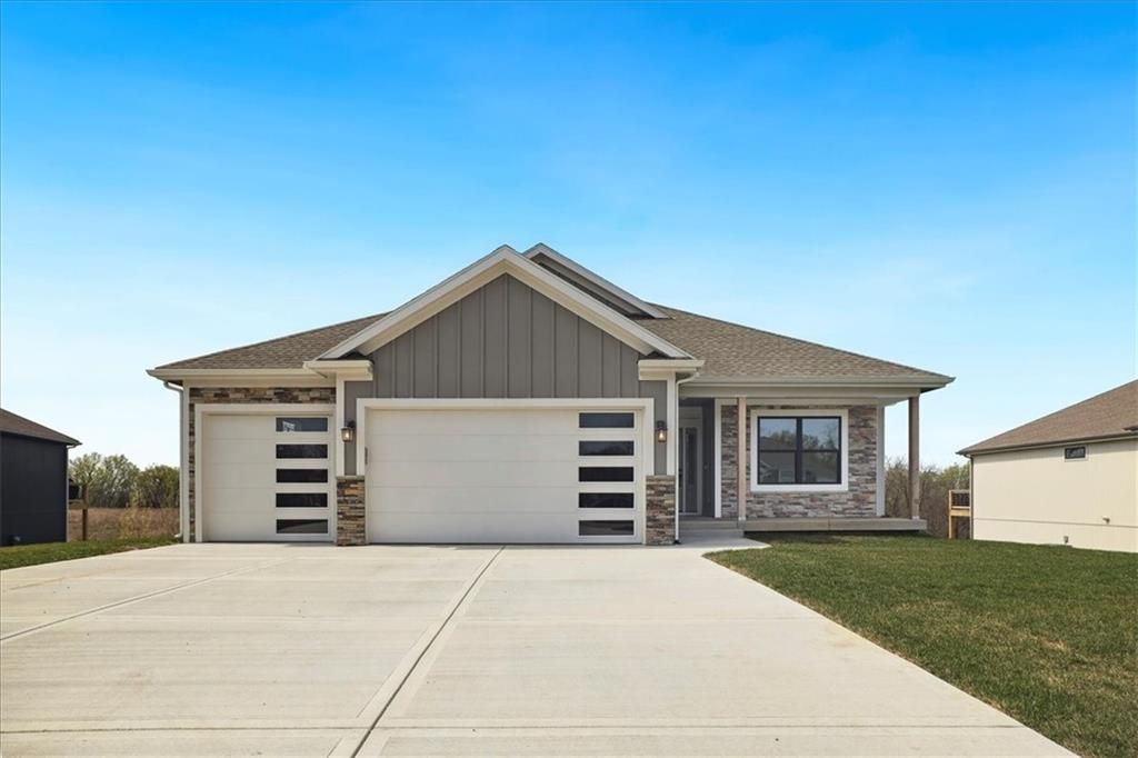 Our Molly 2 Floorplan is a Remarkable reverse 1.5 features a true front porch, 11 vaulted ceilings, large hidden walk in pantry, tons of natural light and a covered deck, great for summer nights! Kitchen comes with stainless steel appliances and a large granite kitchen island. Large master suite with double vanity, walk in shower and a HUGE walk in closet with access to the laundry room. Finished lower level includes 2 more bedrooms and a full bath and a large rec room for entertaining. Lower level walks out to a covered patio that back to greenspace. This is one of our final lots that backs up to this greenspace! Dont miss this one! PHOTOS OF PREVIOUS BUILD JOB. HOMES MAY VARY BY SELECTIONS, COLORS AND UPGRADES.