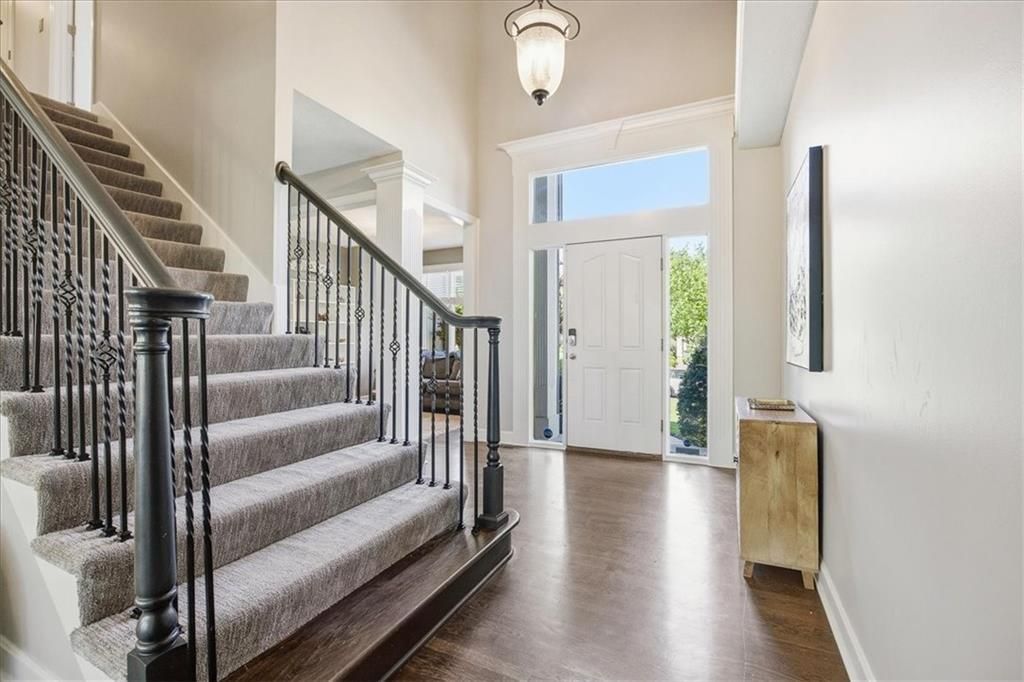 Located in the highly sought-after The Wilderness subdivision in Overland Park, this beautifully maintained home offers the perfect blend of space, style, and location. With nearly 4,000 square feet of living space, theres room for everyone to spread out and enjoy. Step inside to soaring vaulted ceilings and a stunning staircase that welcomes you into the expansive living room, updated kitchen, and dining area?ideal for both everyday living and entertaining. The main level also features a versatile den or home office. The finished daylight lower level is an entertainers dream, complete with surround sound, a built-in entertainment center, quartz-topped wine bar with a drinking ledge, wine/mini fridge, and even a pool table. A full bathroom and additional storage complete the lower level. Upstairs, youll find generously sized bedrooms, including a luxurious primary suite retreat featuring a cozy fireplace, spa-like tub, and an oversized walk-in closet. Enjoy an incredible amount of finished living space along with neighborhood amenities that include a pool, playground, scenic trails, and ponds?all within walking distance to schools.