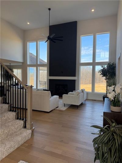 The Glendale Grande blends style, function, and comfort in every detail. The open gathering room centers around a fireplace with a quartz mantel and tile surround, flowing seamlessly into a kitchen designed to impress?granite countertops, tile backsplash, under-cabinet lighting, soft-close drawers, gas cooktop connection, and a spacious walk-in pantry. Every bedroom offers a walk-in closet, while the primary suite features a quartz double vanity and a zero-entry tiled shower with dual shower heads. Wood floors extend throughout the main level, with tile in the baths and the laundry room. Outdoor living shines with a covered composite deck, lower patio, and walkout lower level including John Deere doors for mowing equipment or tools. Durable finishes include board-and-batten siding with stone, SMART panel siding, and a premium 50-year Presidential roof with a standing seam metal roof. Practical upgrades?like a humidifier, gas HVAC system, 50-gallon water heater, and garage heater?make this home as efficient as it is beautiful.
