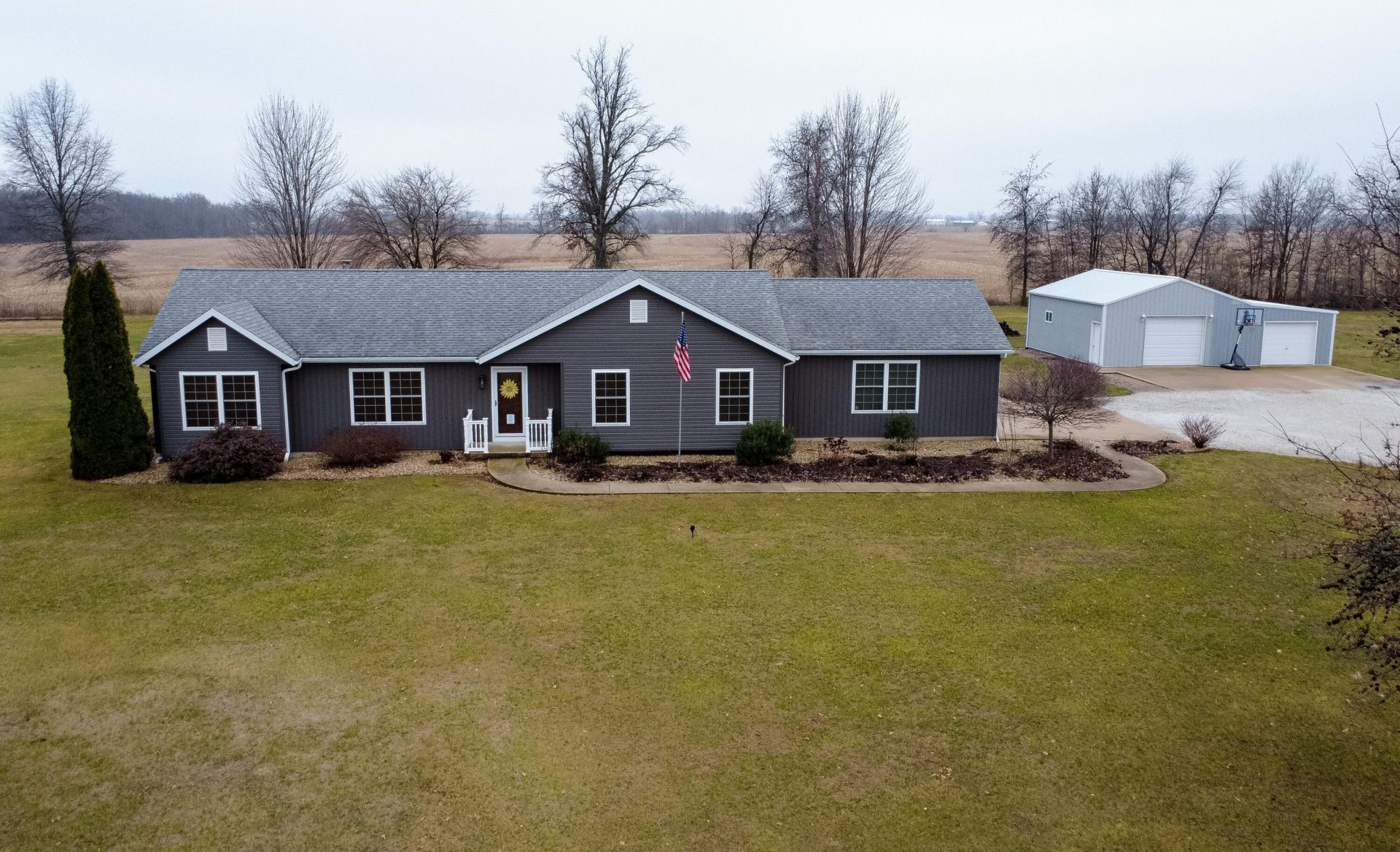 Welcome to Mid-Missouri paradise! This thoughtfully updated 3 bedroom, 2 bathroom ranch sits on 3.4 picturesque acres located just 5 miles from Centralia and a stone's throw from Columbia. This showplace offers exceptional privacy, mature trees, and landscaping that falls second to none. Built in 2001, the home boasts countless recent upgrades, including vinyl siding, a new garage door, and a beautiful back patio. The interior boasts acacia hardwood floors, vaulted ceilings with a custom beam, a soapstone woodstove, and a renovated kitchen with hickory cabinets and granite countertops. Additional features include a 5-foot crawlspace/storm shelter, a spacious two-car garage, a 14'x16' deck with a pergola, heated 24'x32' detached shed, 10'x16' garden shed, apple trees, blackberry bushes & grapevines. Enjoy peaceful country living in Audrain County within the Centralia School District!