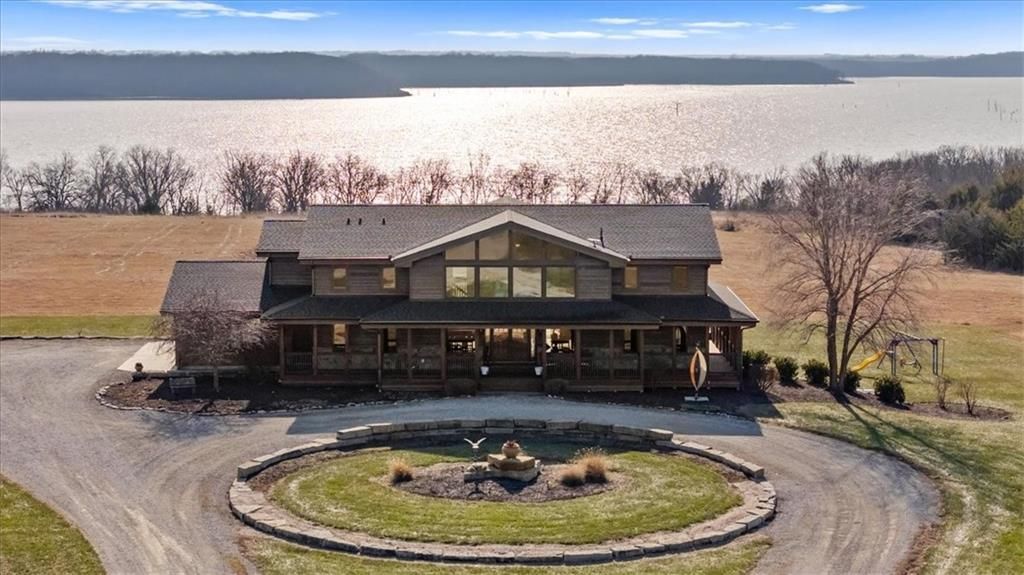 Welcome to Eagles Nest, a truly extraordinary estate offering a view of Clinton Lake like no other. Tucked behind a private entry gate and surrounded by breathtaking natural beauty, this remarkable property delivers the perfect blend of privacy, space, and scenic lake living.Set on 3.6 acres of residential land plus an additional 19 acres of agricultural property, the estate offers nearly 7,200 square feet of meticulously maintained living space?including 4,592 sq. ft. above grade and 2,600 sq. ft. in the fully finished walkout lower level. Thoughtfully designed with exceptional attention to detail, the home features 6 spacious bedrooms and 6 full bathrooms, along with premium features such as automatic window shades in the main living area, Pella sliding glass doors, and Andersen windows throughout.Several rooms capture stunning panoramic views of Clinton Lake, filling the home with natural light and creating a peaceful connection to the surrounding landscape.The walkout lower level is beautifully finished with two bedrooms and two full bathrooms, each with egress windows, and is pre-plumbed for a kitchen, presenting an excellent opportunity for multi-generational living or guest quarters.Outdoor living is just as impressive. Relax in the private hot tub, explore the expansive acreage, or enjoy the serenity of the propertys rare lake access and unmatched vantage point overlooking Clinton Lake.Adding exceptional functionality to the estate is the large Morton building, ideal for storing boats, recreational equipment, vehicles, or creating the ultimate workshop or hobby space.Lovingly maintained and masterfully designed, Eagles Nest is more than a home?its a private sanctuary where lake views, acreage, and luxury living come together in one of the most unique offerings near Lawrence. Opportunities like this are exceptionally rare.