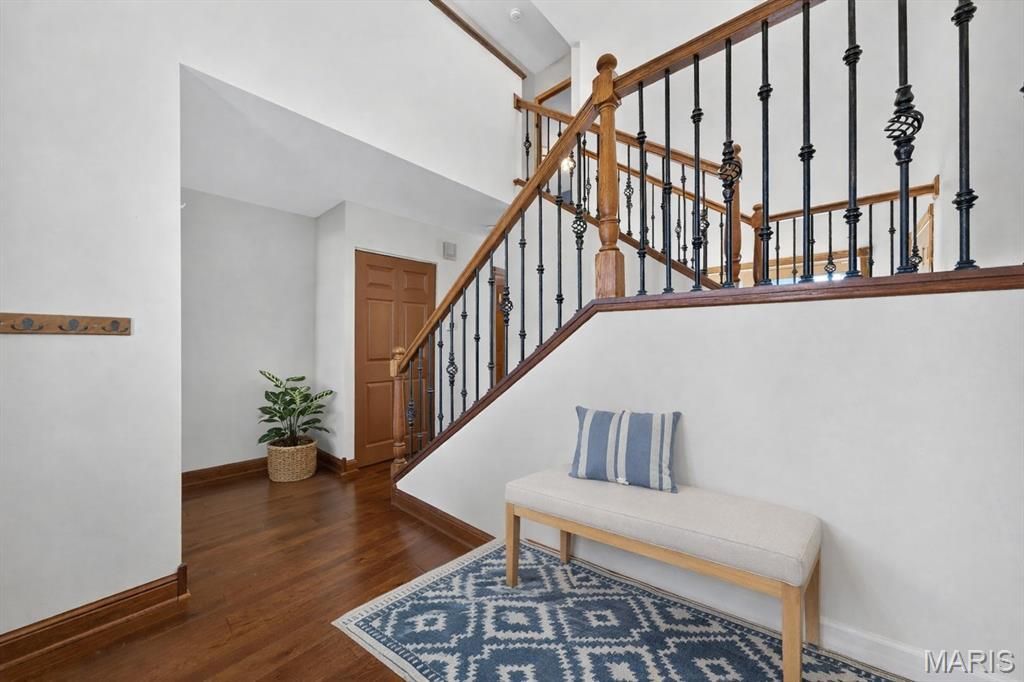 Welcome home to this beautifully updated 4-bedroom, 2.5-bath two-story in desirable St. Peters! This stunning residence blends timeless charm w/ modern upgrades, offering exceptional comfort &style throughout. The gourmet kitchen features custom cabinetry w/ decorative lighting, undermount lighting, ss appliances, a refrigerator that stays, double ovens, a rare double dishwasher & a spacious walk-in pantry. Travertine tile flooring & a charming window bench w/ additional storage complete the space. Hickory floors flow throughout the main level, where you'll also find a formal dining room adorned w/ crown molding & chair rail, & a cozy family room showcasing a wood-burning fireplace w/ gas starter, stacked stone surround, custom cabinetry, & a wet bar-perfect for entertaining. Step outside to enjoy the patio or deck overlooking the solar-heated above-ground pool. Relax beneath the custom pergola, beautifully accented by a personalized grapevine from Massachusetts, that flourishes each summer. The upper level offers 4 spacious bedrooms w/ hickory flooring & ceiling fans, including a serene primary suite w/ an updated ensuite featuring a stunning walk-in shower. The hall bath is also tastefully updated. Additional highlights include main-floor laundry & a walk-out lower level w/ workbenches, a water softener, & a steam humidifier, ready for your finishing touches. Located in the sought-after Fort Zumwalt East School District, near parks, trails, the Rec-Plex & community amenities.