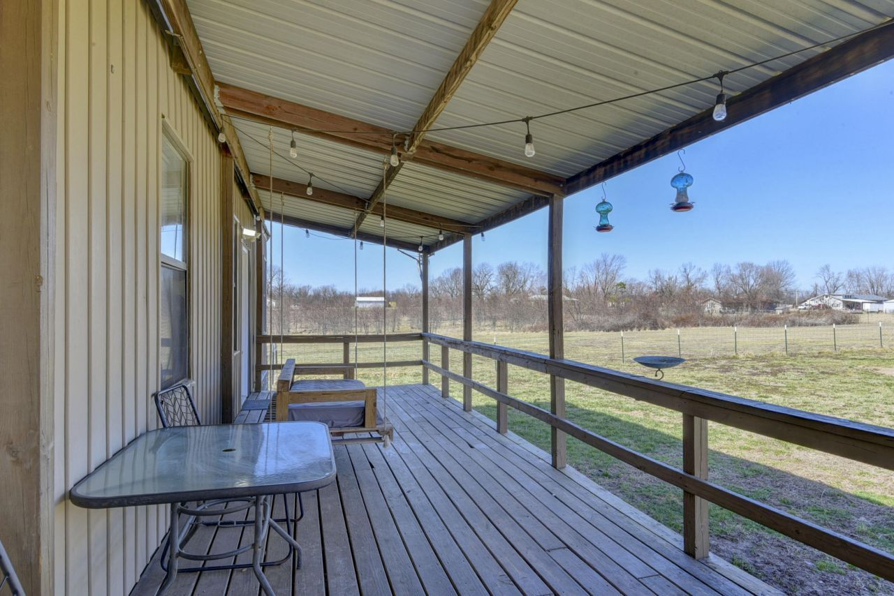 Tucked nearly 600 feet off the road on 6 peaceful, usable acres, this inviting barndominium blends the freedom of true country living with the convenience of being just 10 minutes from Springfield or Republic. The setting is quiet, private, and ideal for anyone dreaming of space, self-sufficiency, or a small homestead of their own.Inside, the barndominium surprises with a modern and spacious interior featuring approximately 2,300 square feet of comfortable living space. The open layout, granite countertops, and clean, contemporary finishes create a warm and stylish atmosphere that pairs beautifully with the rugged charm of the exterior. With 4 bedrooms and 2 bathrooms, there's room for family, guests, or a dedicated office.A covered porch stretches across the front, offering a peaceful place to enjoy sunrise coffee, evening breezes, and the quiet rhythm of country life.The land offers a perfect mix of open ground and natural privacy, giving you room for livestock, gardens, and hobby farming. Whether you envision chickens, goats, a thriving garden, or simply wide-open space to breathe, this property is already positioned for that lifestyle. The insulated, heated shop adds even more versatility--ideal for livestock, equipment, projects, or expanding your homestead setup.If you've been searching for a property that delivers acreage, privacy, and homesteading potential--without sacrificing quick access to Springfield-area amenities--this one is truly worth seeing in person.