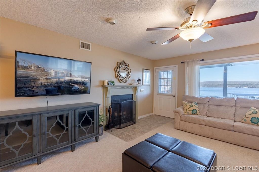 Main channel views, vacation rental eligibility, and a covered boat slip make this 2-bed, 2-bath lakefront condo at Breakwater Bay Club a standout at Lake of the Ozarks. Located at the 22-mile marker in Osage Beach, this well-maintained unit offers 1,125 sq ft, direct lake access, and stunning open water views. Pride of ownership is evident throughout, with a nicely updated primary bathroom and a clean, move-in-ready feel. The screened-in deck expands your living space outdoors, giving you a front-row seat to lake activity while keeping the bugs out. Easy access with just a few steps from covered parking to the front door adds to the appeal. The 10x28 covered slip with 8,000 lb lift sits just steps from the unit, ideal for a pontoon or deck boat. A new dock is coming in May with a larger 12x32 slip (A1). Breakwater Bay Club amenities include a pool, clubhouse, playground, and tennis courts. Nightly rentals allowed-perfect for investment or personal use!