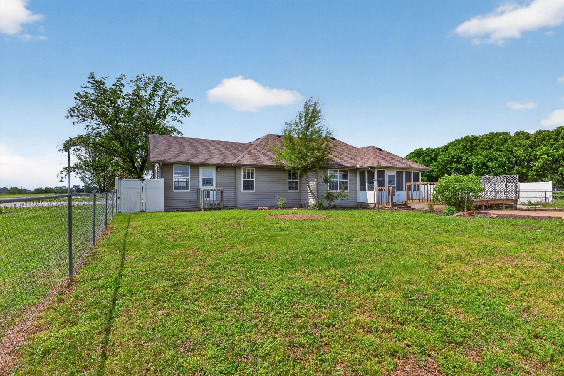 Exceptional single-level residence built in 2006, offering over 2,000 square feet of thoughtfully designed living space, set on a beautifully sized 1.42-acre lot. This 3-bedroom, 2-bath home showcases a desirable split-bedroom floor plan and an expansive primary suite featuring dual vanities, a jacuzzi soak tub, walk-in shower, and a generously sized walk-in closet. The kitchen is both stylish and functional, highlighted by a beautiful tile backsplash, multiple granite countertop surfaces, and an eat-in bar--perfect for casual dining or entertaining. It flows seamlessly into the main living area, creating an open, connected space ideal for everyday living. Designed for comfort and versatility, the home also features a light-filled sunroom that extends the living space and opens to the backyard, offering an inviting indoor-outdoor experience. An attached two-car garage adds convenience, while the 1.42-acre property provides a rare sense of space and opportunity. The dual-fenced backyard is well-suited for pets or recreation, and a former pool site offers excellent potential for a new installation or a custom outdoor retreat such as a fire pit or gathering area. A refined blend of space, design, and future potential--this property delivers elevated living in a peaceful, private setting.