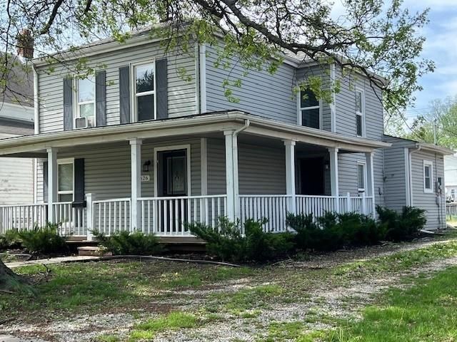 Looking for a large, historic home close to downtown and the bike trail? This lovely family home has one of a kind features you will love with all the room you need! Extra large upstairs bedroom could be a primary suite with room for a nursery or accommodate multiple childrens beds. There is a first floor bedroom with its own full bathroom that could also be used as an office. Two eating areas: a formal dining room as well as a breakfast table area. Open concept first floor, sliding barn door, barn door pantry under the stairs. Unique, one-of-a kind architectural wood design on the stairs. The home does have a storm cellar. The previous tenants had an above ground pool, the fence can stay or seller will have removed if buyer wishes. April 26-New stove, hot water heater, lazy suzan, interior paint, porch paint, gutters cleaned. There is a window a/c in the upstairs bedroom and a sump pump in the cellar.