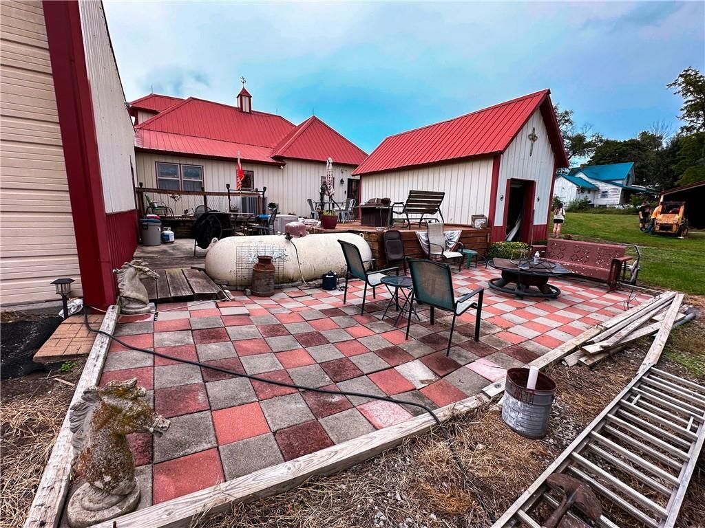 PRICE REDUCTION - SELLERS ARE MOTIVED - Relax on the deck on the front of this property and watch the sunset over the gently rolling county hills. Inside you will find a 3 bedroom, 1 full bath older remodeled home in the small country town of Fairport in Dekalb county. This home sits on 1.3 acres and the vacant lot of .37 acres to the north -also sells with the property. Inside you will find an older updated rustic, country feel with the primary bedroom downstairs and 2 bedrooms upstairs with a bonus room in the middle. The main level, enjoy the kitchen, dining room, full bath, laundry room and another bonus room off the living room, great for a small office. From the kitchen walk out onto a large deck, it does need some replacement (deck boards), it leads to the large drive through garage and they used the small building on the deck as a summer kitchen where they canned foods in season. Looking off the back deck, they had horses on the property and several outbuildings to accommodate them. 3 wells are on the property as well as 220 electricity for camper hookups. It is a great retreat for the hunter and fisherman as work stations are located throughout the property. New HVAC and hot water heater earlier 2025. Appliances stay and are newer also. Garage is tall enough to pull a Semi into it. Property is selling As Is. The owners are asking for 24 hour notice to do a showing. They are motivated to sell as health is an issue.