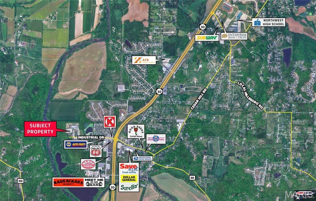 Contractor Light Commercial Building and Yard is conveniently located in Cedar Hill, MO, just under a quarter mile off Gravois Rd (MO 30) and 16 miles west of Fenton at MO-141. This property includes a 2,469 square foot warehouse and a 416 square foot office, all situated on a 1-acre lot that is mostly graveled. The light commercial building, featuring an all-steel exterior, was constructed in 2004.The warehouse is equipped with two large drive-in doors, a rear high-bay door measuring 16' x 14', a front door measuring 10' x 10', and two personnel doors for easy access. The 416 square foot office is located at the entrance of the warehouse, promoting an efficient workflow. Inside the warehouse, the ceiling height reaches 16 feet along the exterior walls and approximately 18 feet at the center gable. The property also includes an outdoor concrete dock and ramp, making it ideal for larger deliveries, as well as ample space for a 53-foot trailer to navigate around the building. Location: Rural
