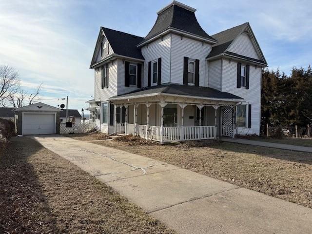Ultimate classic living in this 2 story Victorian home. This is just one of three homes that stand together and are majestic in there being so well cared for, loved, and are so lovely unique in their homage to the Victorian age This large home has some of the most gorgeous woodwork you will find anywhere even close to this price. There are large rooms, pocket doors, elegant trim in solid wood and has never been painted. The pictures do not do its justice. There is a closet or 2 in each huge bedroom, The lot also has a workshop in the back yard and a wrap around porch to enjoy the day and evenings in this quite town.