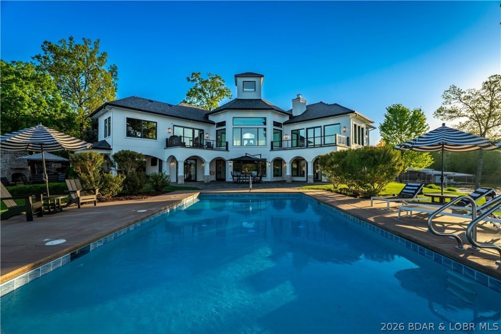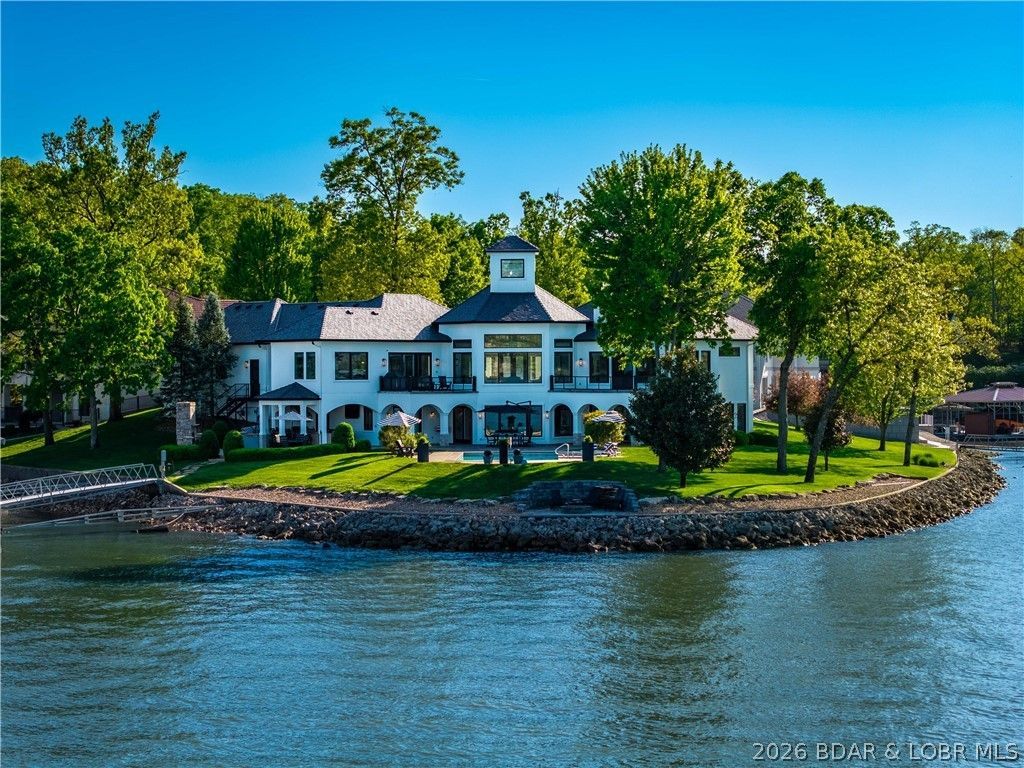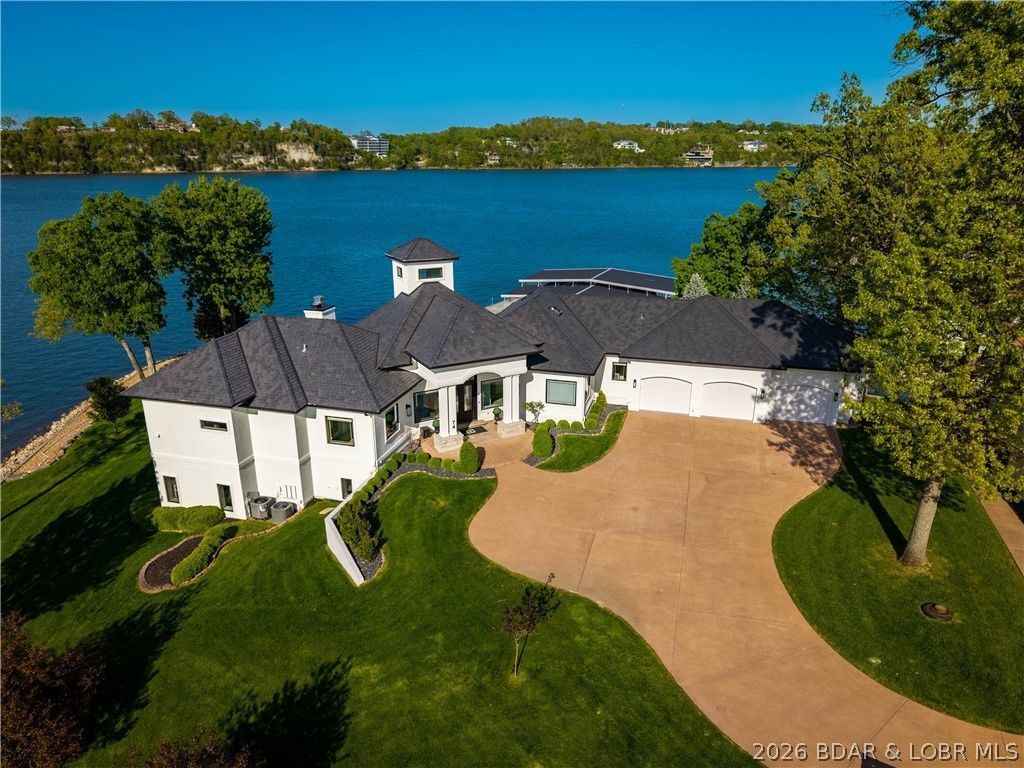 Positioned on a premier point in the prestigious Porto Cima community, this exceptional lakefront estate offers luxury, privacy, and panoramic main channel views. Boasting 464 ft. of shoreline, the property delivers an unmatched waterfront setting. Completely remodeled, the home offers over 6,000 sq. ft. of thoughtfully designed living space with five bedrooms, each featuring a private ensuite. The primary suite and a second suite are conveniently located on the main level. Designed for both elegance and easy lake living, the home offers multiple entertaining areas and sits on a level lot featuring a self-cleaning lakeside pool, outdoor kitchen, fireplace, and lakeside fire pit. The impressive rough-water dock includes 18x50 and 12x32 slips, auto doors for the bar and storage, plus a rough-water wave break. With impeccable craftsmanship and high-end finishes throughout, every detail has been carefully curated to create a sophisticated yet comfortable retreat that shows like a model home. Furnishings are included, allowing for a seamless turnkey opportunity. Enjoy all Porto Cima and Four Seasons amenities, just minutes from The Club at Porto Cima.