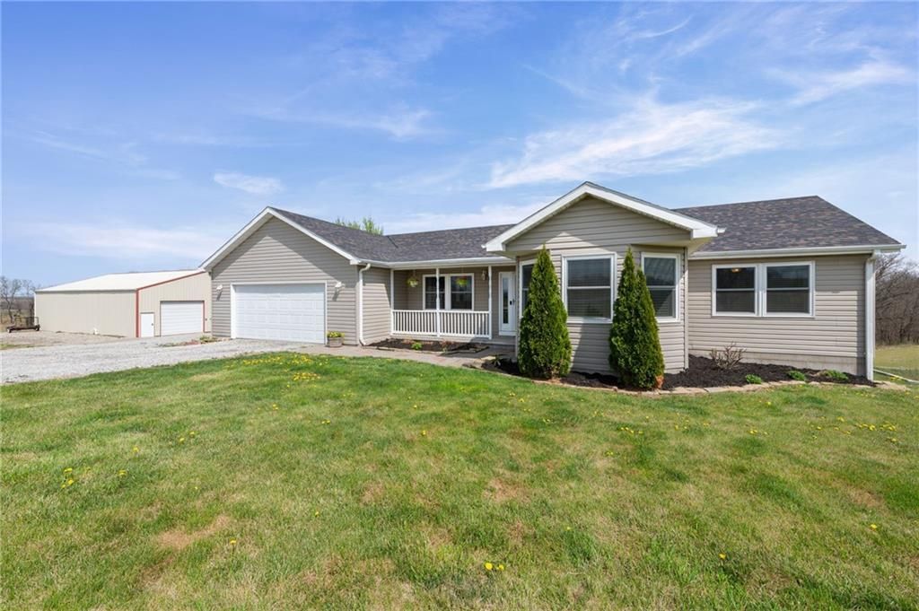 Set back off the road with room to breathe, this property gives you the kind of space most people only talk about. Sitting on 15 acres, the setting is a mix of open ground and woods, with trails already cut in, ideal for side-by-sides, quiet walks, or just getting out without leaving home.The main level is where everyday living happens. Hardwood floors run throughout, connecting a comfortable living area to the kitchen and dining space. Three bedrooms and two full baths are all on this level, along with laundry where you actually need it.Downstairs, the finished walkout basement adds flexibility. Theres a large recreation space, an additional bedroom and full bath, plus room for a home gym or office. LVP flooring keeps it durable and low maintenance.Step outside and it starts to feel like a different pace. The 40x60 outbuilding is already set up with electricity and a 220 hookup, ready for equipment, hobbies, and projects. Theres also groundwork started for horses, with fencing and a stable in progress.The land itself is usable and inviting, with a partially wooded layout that offers privacy and space to explore. Theres even a natural spot for a campsite tucked into the property. And if you want more to roam, Happy Holler Conservation Area sits right across the highway, with a stocked lake for fishing and trails for hiking.Its the kind of place where you can spread out, slow down, and actually use the land.