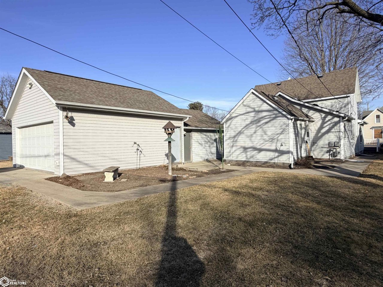 Well-maintained 1-1/2 story home with TWO GARAGES. Step into the mudroom with fantastic pantry/coat closets & space. Kitchen with plenty of counterspace & cabinets and appliances. Nice-sized dining room with space for your table & dining furniture. Large living room with space for many configurations. This level also has a bedroom with built-in dresser. Enclosed front entry area is great additional space, laundry closet, & a 3/4 bath complete this level. Upstairs are two bedrooms with closets & room to put in a bathroom. Front maintenance-free porch area, aluminum siding, yard space, & impressive parking options. The property includes two garages (20' x 24' & 18' x 20'), large parking aprons in front of each, plus both alley and street access. Be sure to add this well-cared for home to your list.