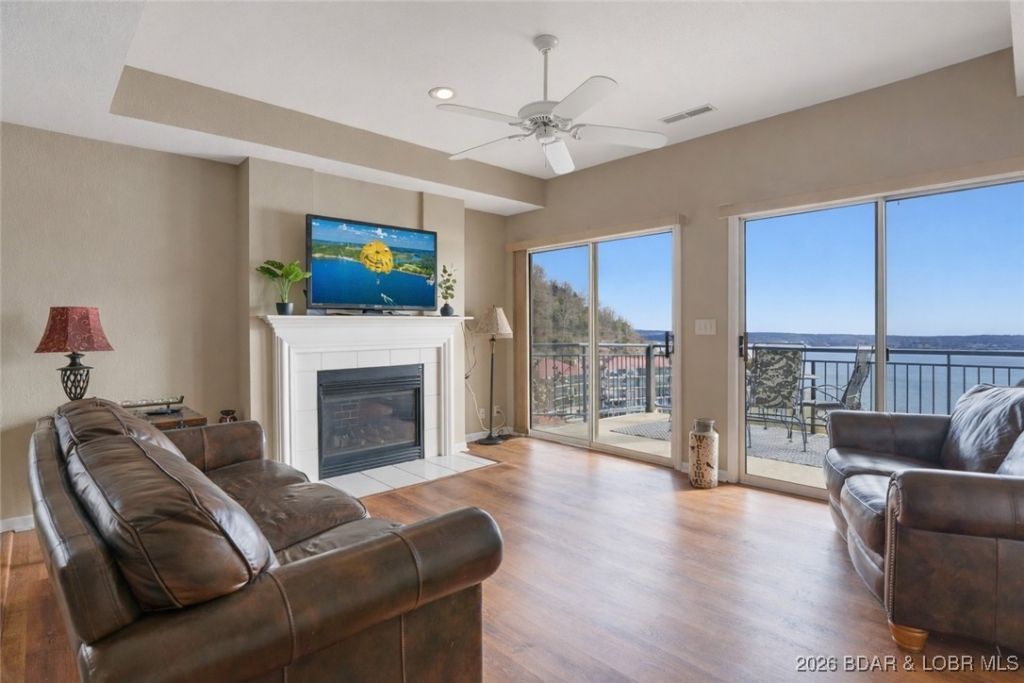 Be prepared for an incredible 2026 in this stunning end-unit condo with incredible panoramic views of the Osage 14MM! This lower level-end unit 3bed/2bath TURN-KEY gem includes a 12x32 boat slip AND a PWC slip, in the highly desirable gated Palisades Condominiums-sought after by land and water. Lower level unit means lower utility bills too! Freshly painted throughout with beautiful new quartz countertops in the kitchen! Features LVP flooring (2023) and tile in living room/kitchen, trayed ceilings, gorgeous fireplace with tile accent and a spacious kitchen with great cabinet space & a pantry. Primary suite has incredible lake view, dual vanity in bath & large walk-in closet. The covered deck offers the perfect blend of relaxation and stunning scenery. Also unit is just STEPS to one of four pools, 2 minutes from Bagnell Dam Strip and 5 minutes from Osage Beach! Grocery, entertainment, shopping, a multitude of restaurants, quick hwy access, what more could you ask for?! The boat slip sits behind wave-breaks for easy access of docking. Other recent updates include washer/dryer (few years old), water heater (2024) and dishwasher (2025). Make your lake living dream a reality!