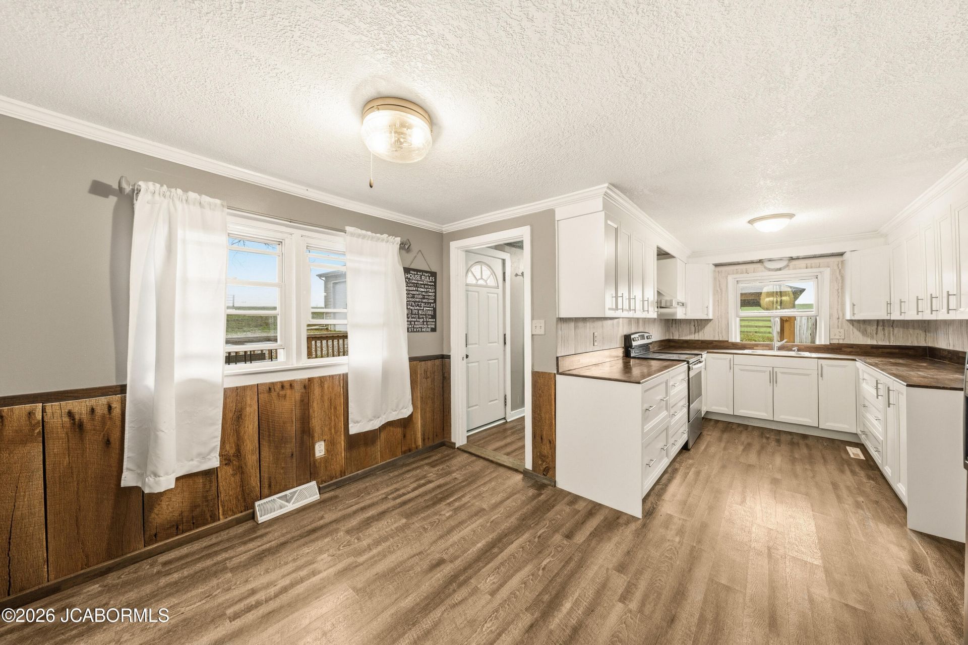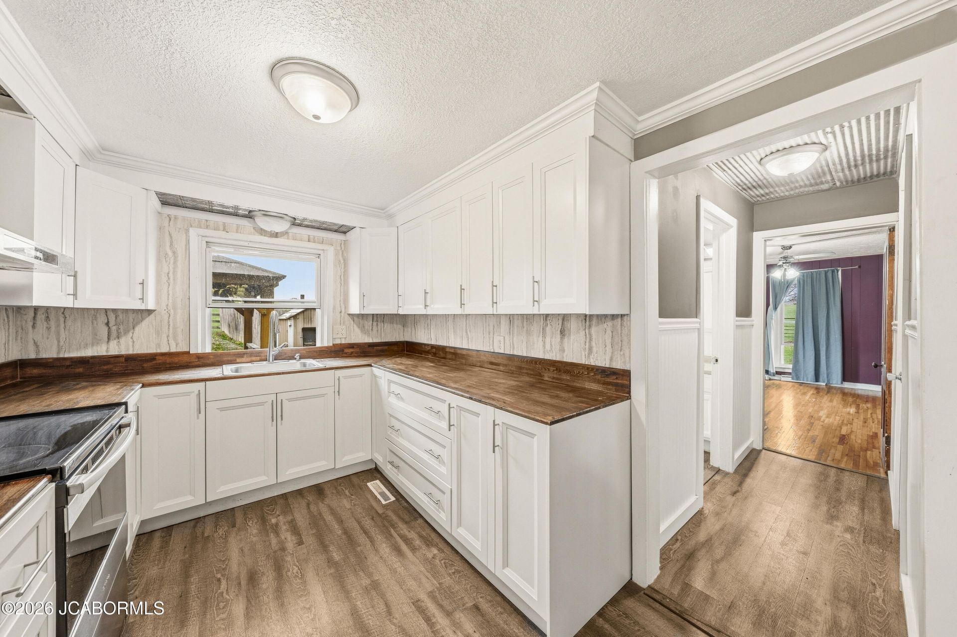 Updated modern farmhouse on .67 acres with shop! Built in 1868, this 1,573 sq ft home offers 3 bedrooms and 1 bath with extensive updates inside and out. Cozy interior features newer LVP flooring on the main level and an updated kitchen with new cabinets and countertops. One bedroom on the main level with two additional bedrooms upstairs, plus a large upper-level storage room. Exterior includes durable Hardy siding and ample gravel parking. Property includes a 40X50 detached shop with three garage bays, 2-post lift, and half bath, along with a 20x18 carport. Great combination of historic charm, modern updates, and functional outbuildings. New Bloomfield Schools