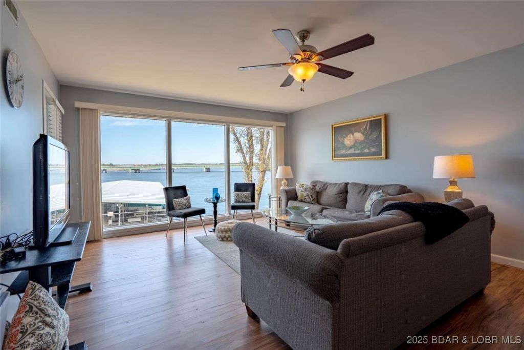 Beautifully maintained 2-bedroom, 2-bath condo at Parkside Place with spectacular main channel views-right where the famous SHOOTOUT races take place! This unit offers elevator access to the condo, dock, and pool. Features include an open layout, modern updates, tasteful furnishings, extra storage, and a private balcony overlooking the State Park. Never rented, only personally owned and cared for. Includes a 10x30 boat slip in the protected community dock with wave break. Move-in ready for immediate lake enjoyment!