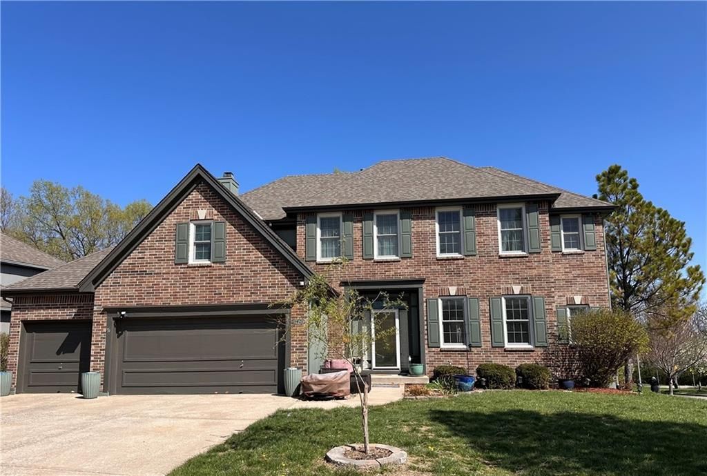 Welcome to this beautiful Woodneath Farms two-story brick-front home on a desirable corner lot, just steps behind Shoal Creek Elementary and the neighborhood trail. Located next to the community pool?the hub of neighborhood activity?this home offers the perfect blend of comfort, space, and convenience.Enjoy the attractive metal fencing around the backyard and deck, with plenty of room for family gatherings and outdoor fun. The yard backs to green space and connects to scenic neighborhood trails. Inside, large east-facing windows fill the great room, stairway, and lower-level recreation room with natural light. The traditional kitchen features hardwood flooring, an island, and updated thermal windows overlooking the backyard. Laundry and a powder room are conveniently located off the kitchen.Upstairs, youll find four carpeted bedrooms, all with ceiling fans and easy access to bathrooms. The spacious primary suite offers a detailed ceiling, double vanity, whirlpool tub, separate shower, and walk-in closet. Two of the bedrooms share a Jack-and-Jill bath.The fully finished basement includes a recreation room with big windows, a door to the patio, a bonus area with a second fireplace, and a wet bar?perfect for entertaining.Woodneath Farms HOA amenities include a competition-sized pool, a lake with a fountain, walking trails, a playground, tennis courts, a picnic pavilion, and a strong connection to the Shoal Creek Elementary and Mid-Continent Public Library via its trail system.