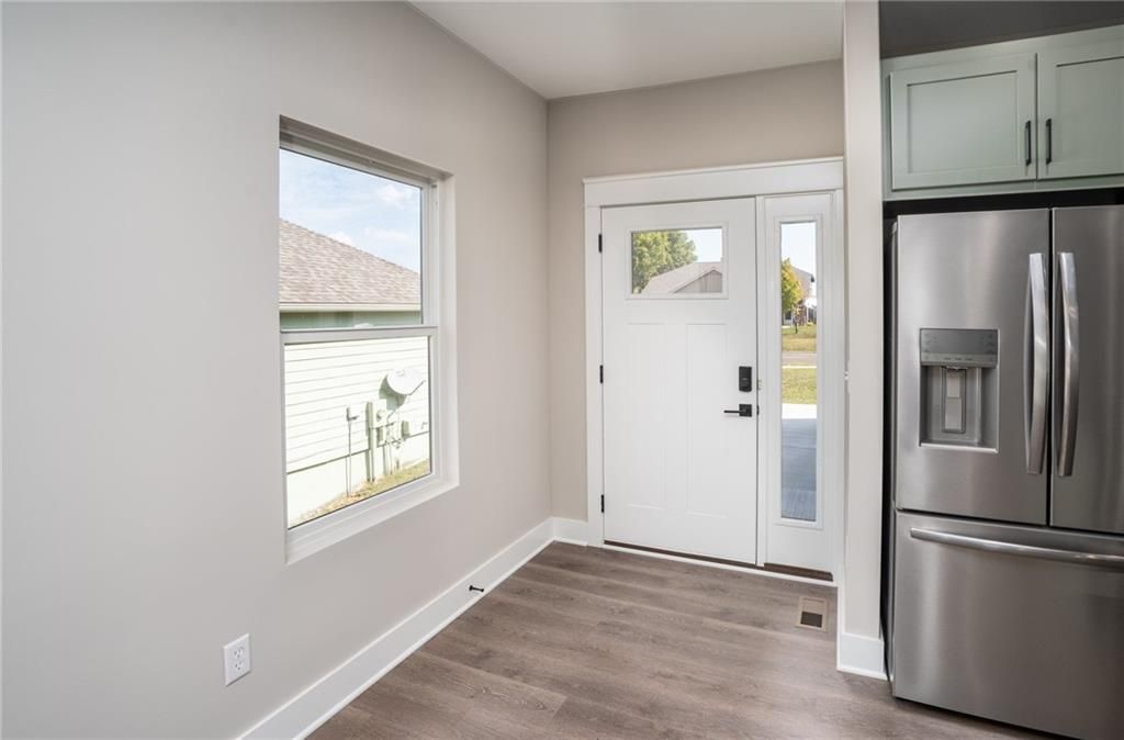 This new construction townhome qualifies for a 5 Year Tax Rebate!! New construction townhome with main-level primary bedroom including double closets. The stylish kitchen is designed to be highly functional, with quartz countertops, a gas range, soft-close cabinets and drawers, and a large pantry. Storage is plentiful throughout this home. The main level bath offers a spacious, beautiful onyx shower. Downstairs, three additional bedrooms share a full bath. Theres also extra living space and a spacious laundry room in the walkout basement. One of the downstairs bedrooms opens directly to a patio, providing a private spot to relax or enjoy the outdoors. LVP flooring runs through the main living areas, giving the home a modern look and durability. The neighborhood is just north of town, offering a quieter setting while keeping Highway 56, Gardner, and Lawrence within easy reach. Homeowners can also take advantage of a 5-year tax rebate by submitting proof of tax payment with the city each year to qualify for the rebate.