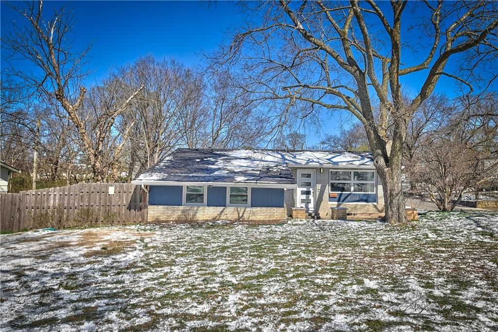 Mid-Century Modern design with thoughtful updates, set on a spacious 0.42-acre lot in a quiet cul-de-sac. The home features hardwood floors, a painted brick fireplace, and an easy flow from the living room into the dining area and updated kitchen with quartz countertops, soft-close cabinetry, and tile backsplash.A large secondary living area with expansive windows provides additional space for entertaining, relaxing, or everyday living. Outside, the fenced backyard, side-entry driveway, and extra-deep two-car garage offer space and flexibility, all conveniently located near KU Med, shopping, and highway access.