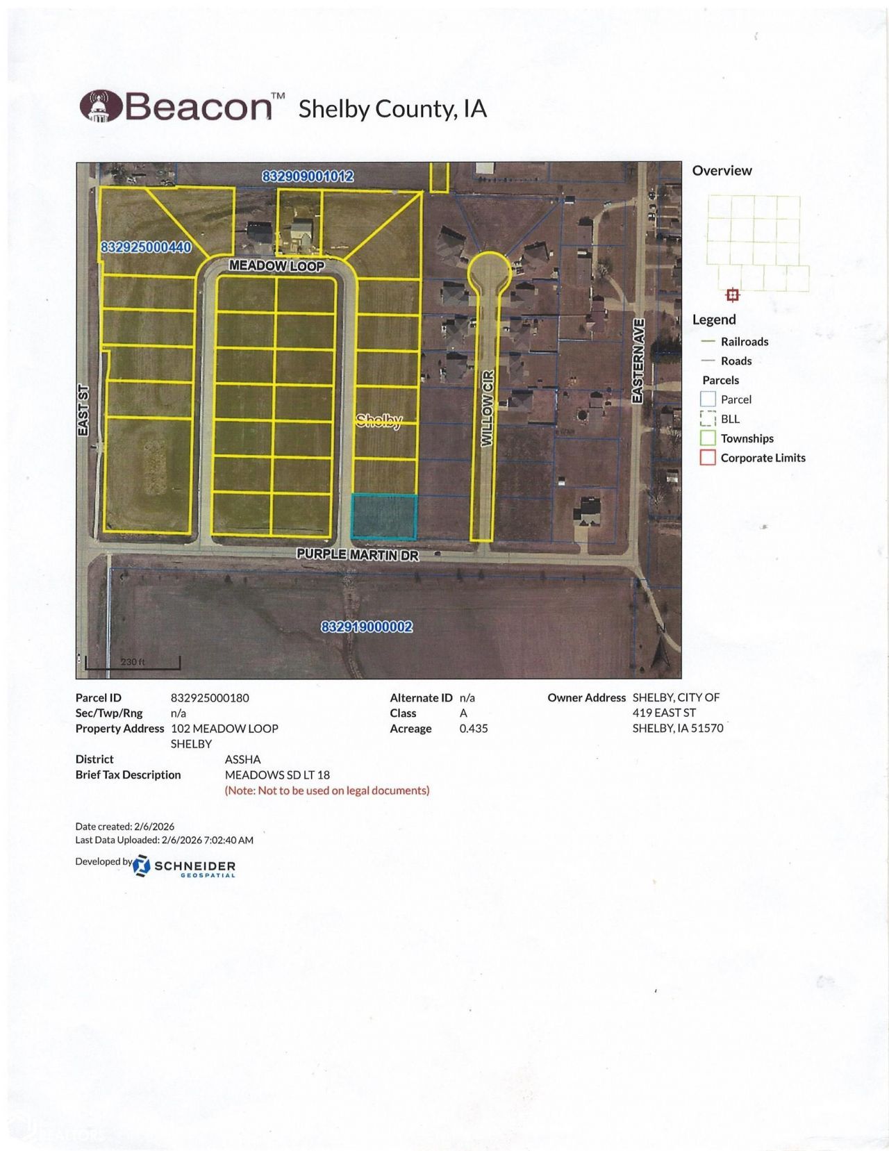 Great new Housing Subdivision in the City of Shelby Iowa. Utilities to the area. Streets are finished. Lighting coming soon. NO builder attachments. 30 minute commute to Council Bluffs/Omaha metro.