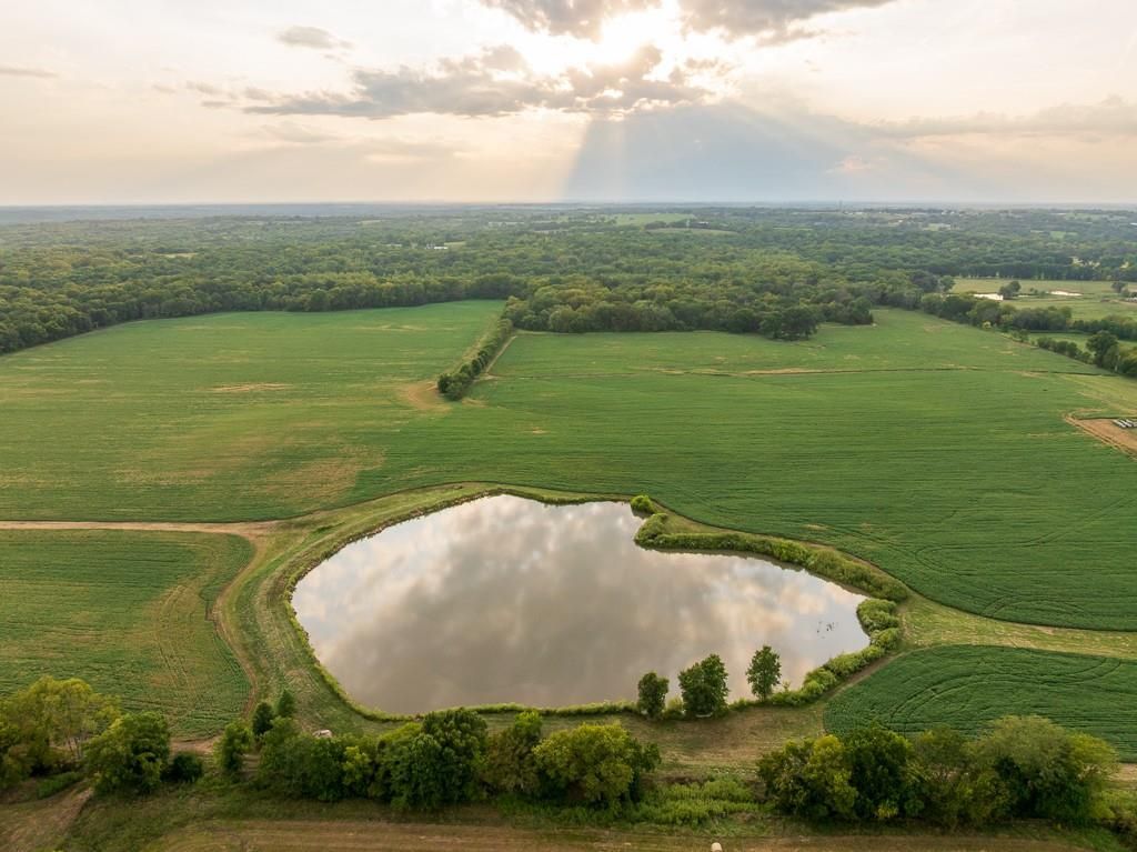 Located in southeastern Cass County, this 155.83 ± acre farm combines fertile soils, recreational opportunity, and breathtaking scenery. With a balance of productive farmland, mature timber, and water features, it offers versatility for both investment and lifestyle.Approximately 108 acres are tillable, featuring fertile soils and competitive cash rent. Another 28 acres of mature timber provide cover for wildlife, along with excellent deer and turkey hunting. The property is fenced and well suited for multiple uses. Recreational appeal is highlighted by 4.6 surface acres of stocked water, plus additional creek frontage. Panoramic views stretch across the South Grand River bottoms, with an elevated homesite offering a stunning vantage point. The gently-sloping terrain delivers over 50 feet of elevation change, adding both character and beauty.Multiple access points make the property highly functional while still providing privacy. County water, power, and fiber internet are all available at the road. The property lies within the Sherwood School District and adjoins the expansive Settles Ford Conservation Area for additional outdoor opportunity.This is a rare chance to own a farm that offers agricultural income, hunting and fishing, and a one-of-a-kind setting for your dream homesite.